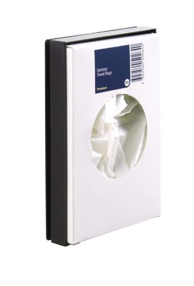 Sanitetspåshållare i pulverlackat stål. Alla färger går att få på förfrågan. Anpassad för sanitetspåsar B5 eller motsvarande.