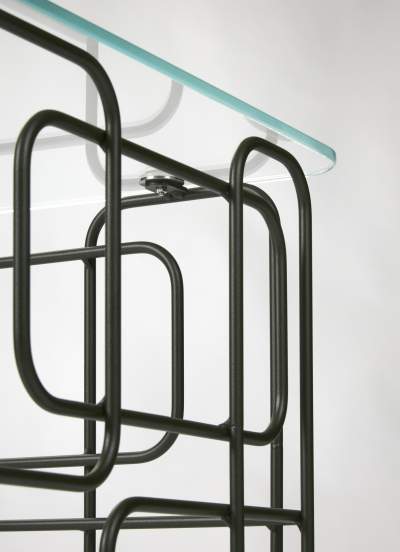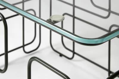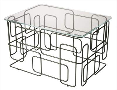 Ett loungebord med skiva i härdat glas alternativt i träfanér. Stommen i pulverlackad tråd. Alla färger går att få på förfrågan. OMFATTAS AV VÅRT RETURSYSTEM, TILLVERKAD I SVERIGE