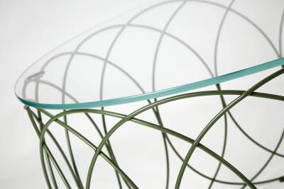 Ett loungebord med skiva i härdat glas alternativt i träfanér. Stommen i pulverlackad tråd. Alla färger går att få på förfrågan.