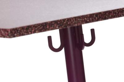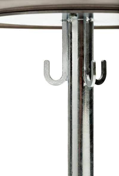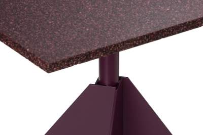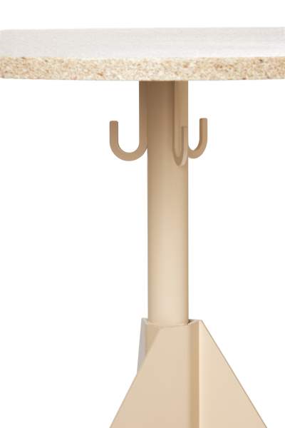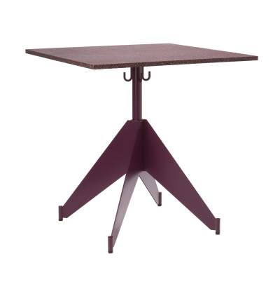 Ett oömt cafébord med stålunderrede och väskkrokar. Skivan går att få i ett flertal material. Alla färger går att få på förfrågan. OMFATTAS AV VÅRT RETURSYSTEM, TILLVERKAD I SVERIGE