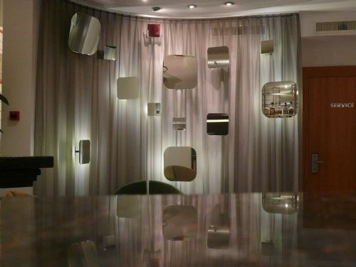 Dekorations speglar i lobby och bar.
