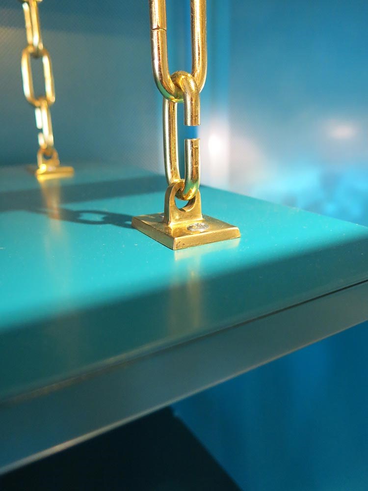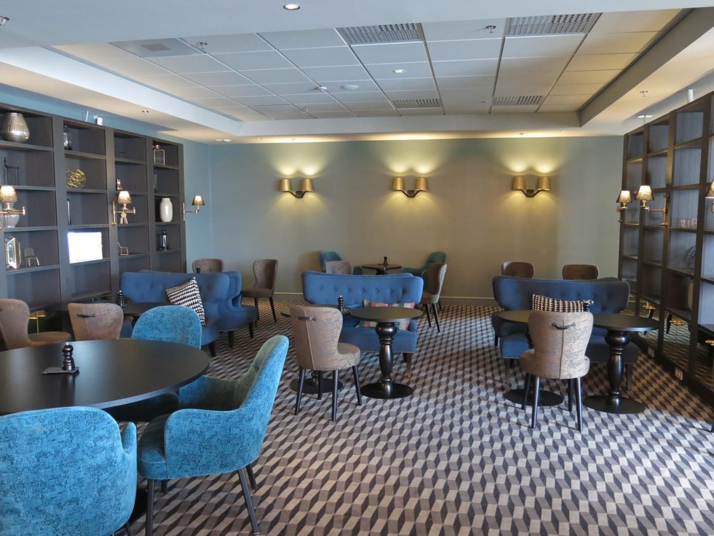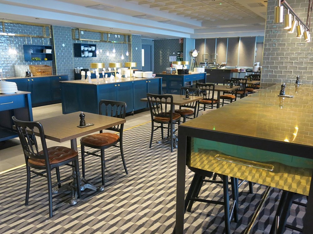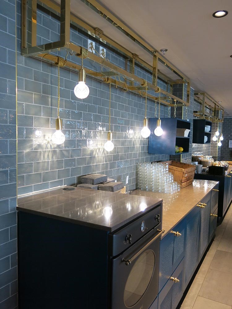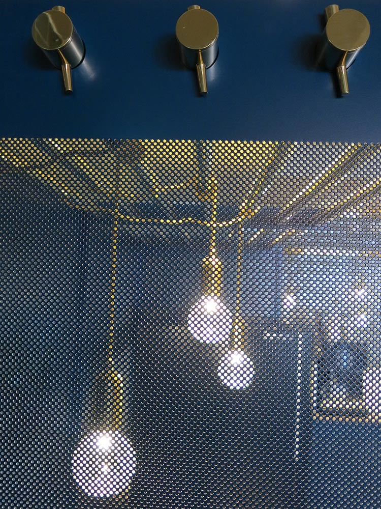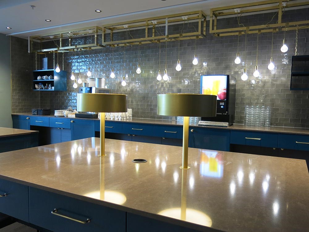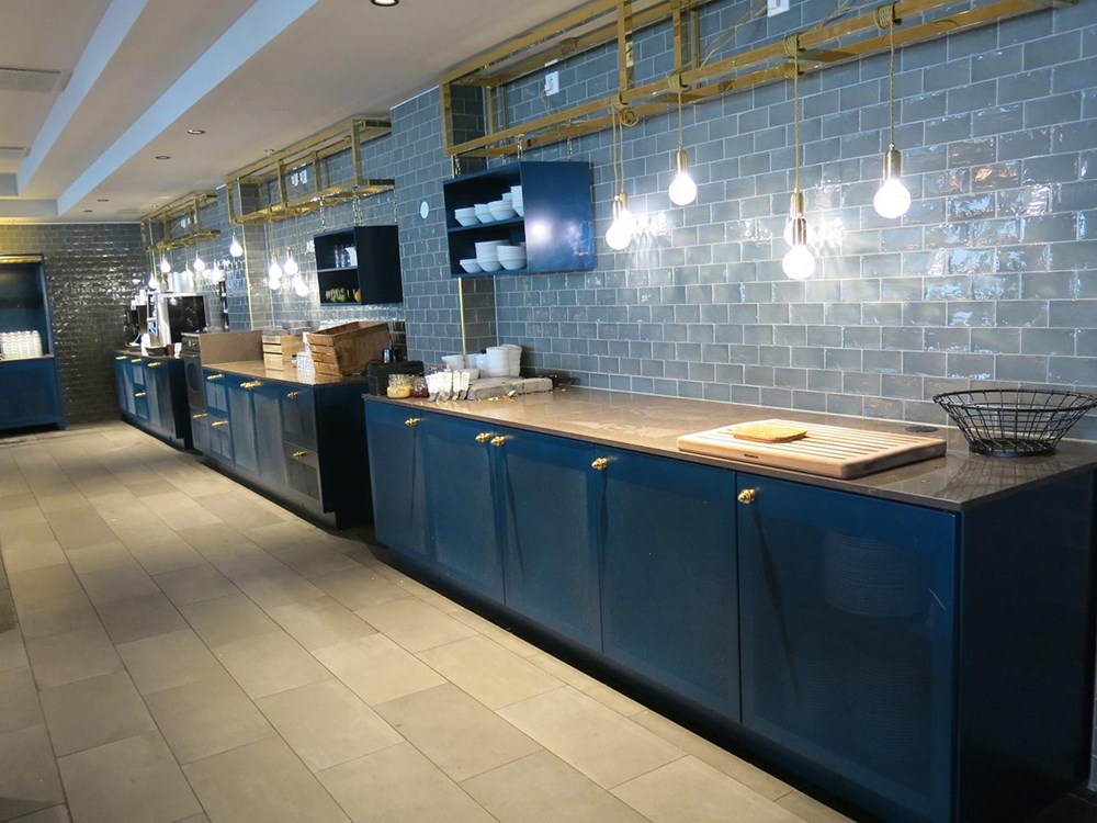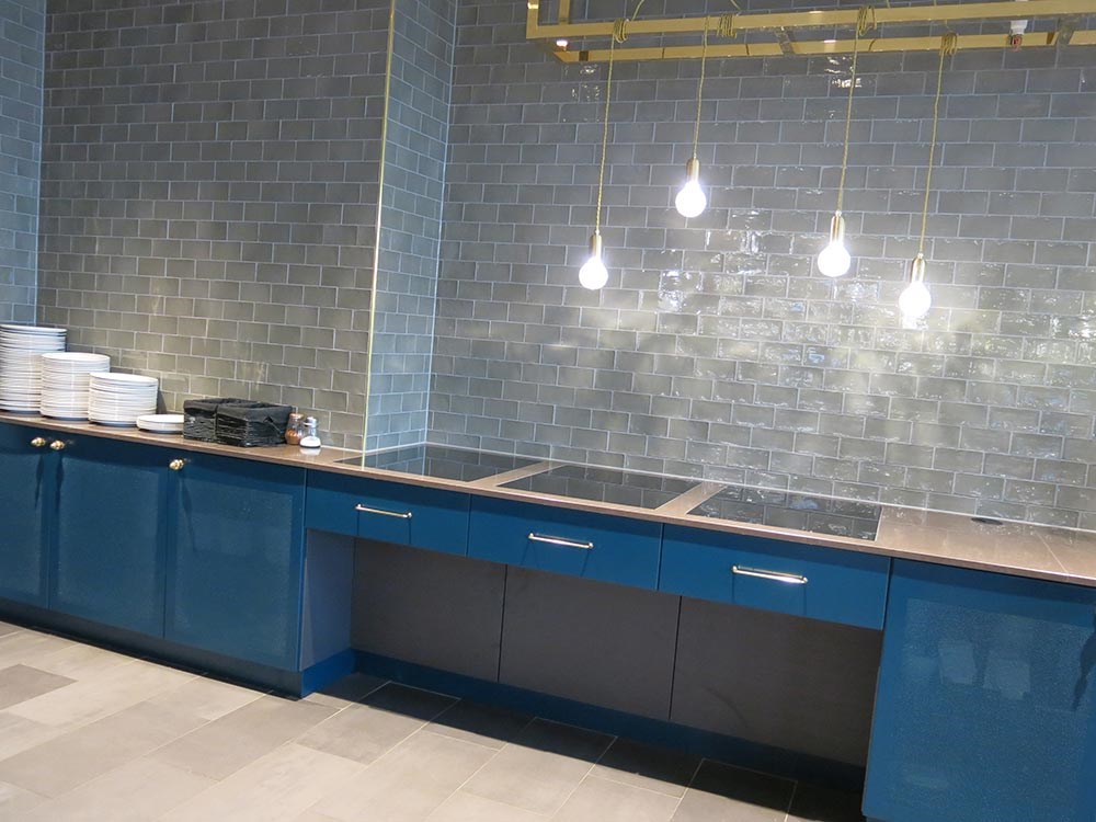 Buffémöbler, bord, hyllor och serveringsbord med lampor måttanpassade för hotellet. Bar och restaurang inredning.Bord och rumsavdelare i foajén. Växthuset.