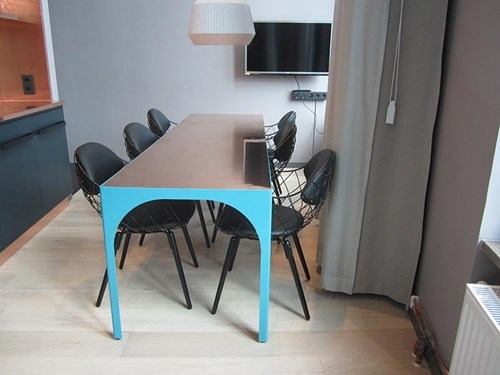 Skrivbord, sänggavlar, skåp, kommoder, speglar, krokar, relingar, hallmöbler, pendladelampor till alla rum. Buffébord, kroklister, pendlade lampor, tidningsställ, metallarbete samt ljusinstallation till publika områden.