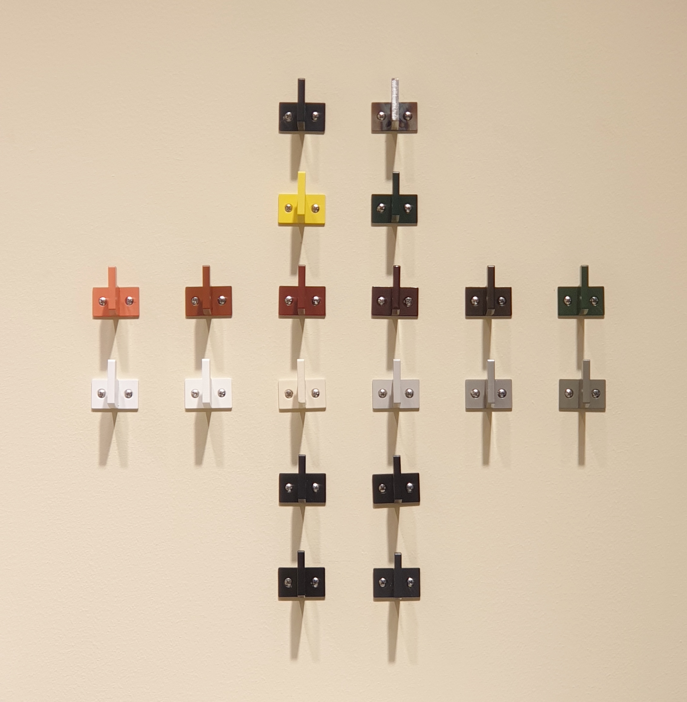 Svedholm Design är specialister på inredning av stringenta, hållbara material som stål och ser till att du får rätt färg på metallen. Färgsatt stål ger dig frihet för ditt projekt och utbudet är stort. Faktum är att vår lackerare har över 200 standard RAL- kulörer att välja bland. Med valet av glans 70, glans 30 eller finstruktur resulterar i att du kan välja minst 600 olika varianter. Vilken är din favoritfärg? På bilden ser du färgerna vi har lackat vår badrumsserie SLITS i sedan januari. Vi är så klart nyfikna att se höstens kulörer.