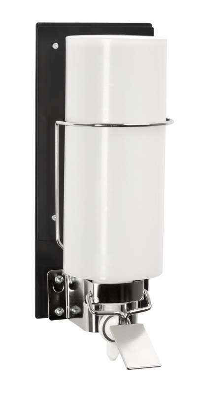 Alcogel/soap dispenser made of powder coated steel. All colours are available upon request.